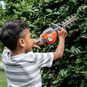 Toy looks just like a real Husqvarna 122HD45 hedge trimmer! This toy hedge trimmer is fun for children ages 3 and up. Makes hedge trimmer sounds. Cutters move back and forth to simulate cutting action when trigger is pulled. Young or old, everyone wants to perform like the pros. Husqvarna's new hedge trimmer is perfect for budding professionals. It's a fun and safe way for kids to be a part of the outdoor chores.